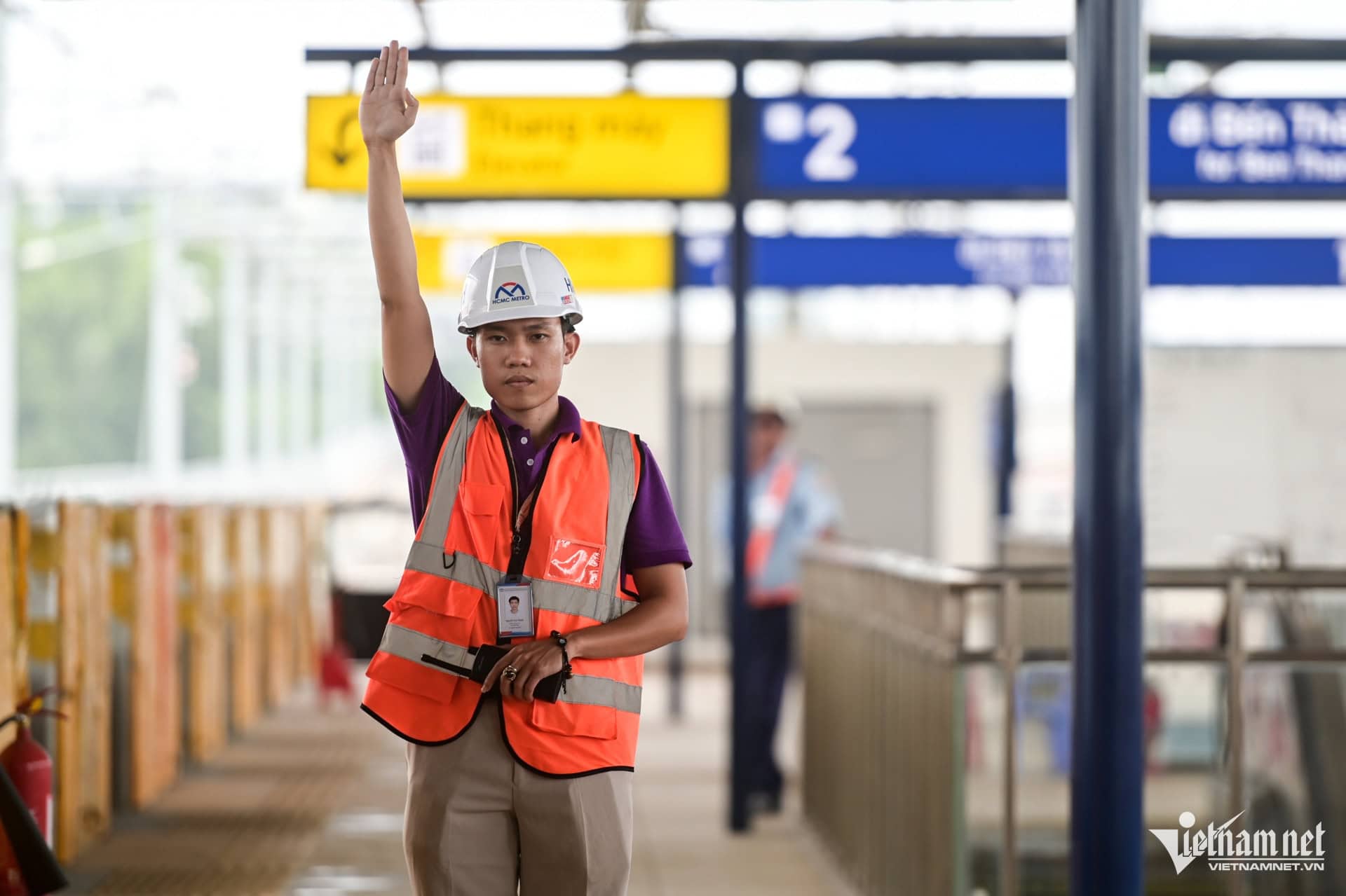 Lực lượng nhân viên và tình nguyện viên thường xuyên túc trực tại các nhà ga để hướng dẫn người dân làm quen với loại hình phương tiện mới.